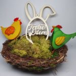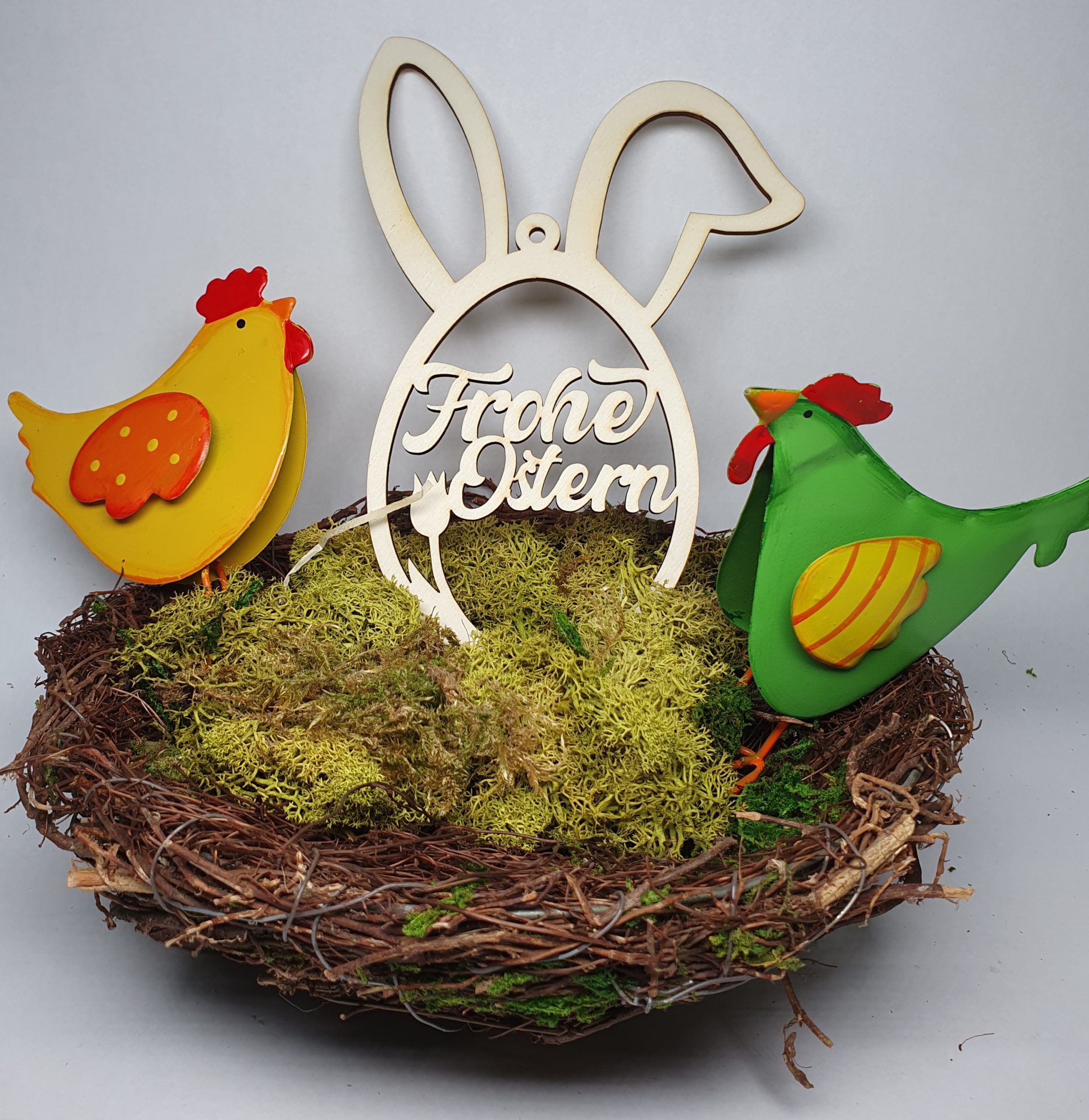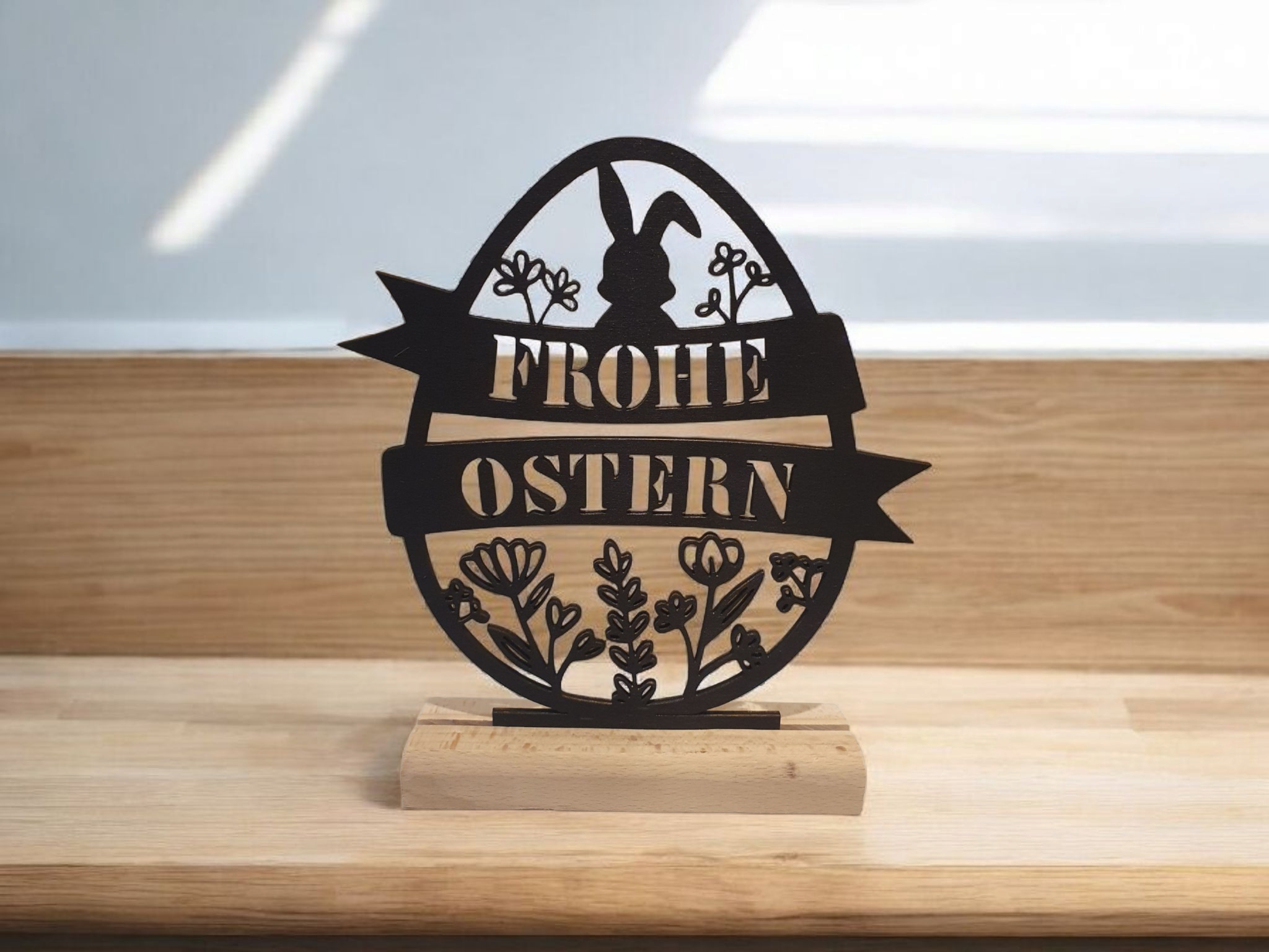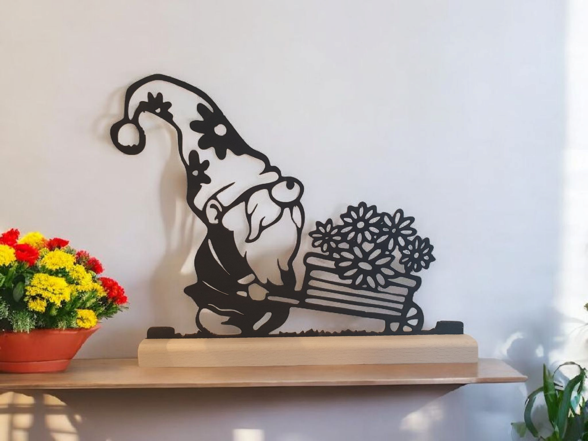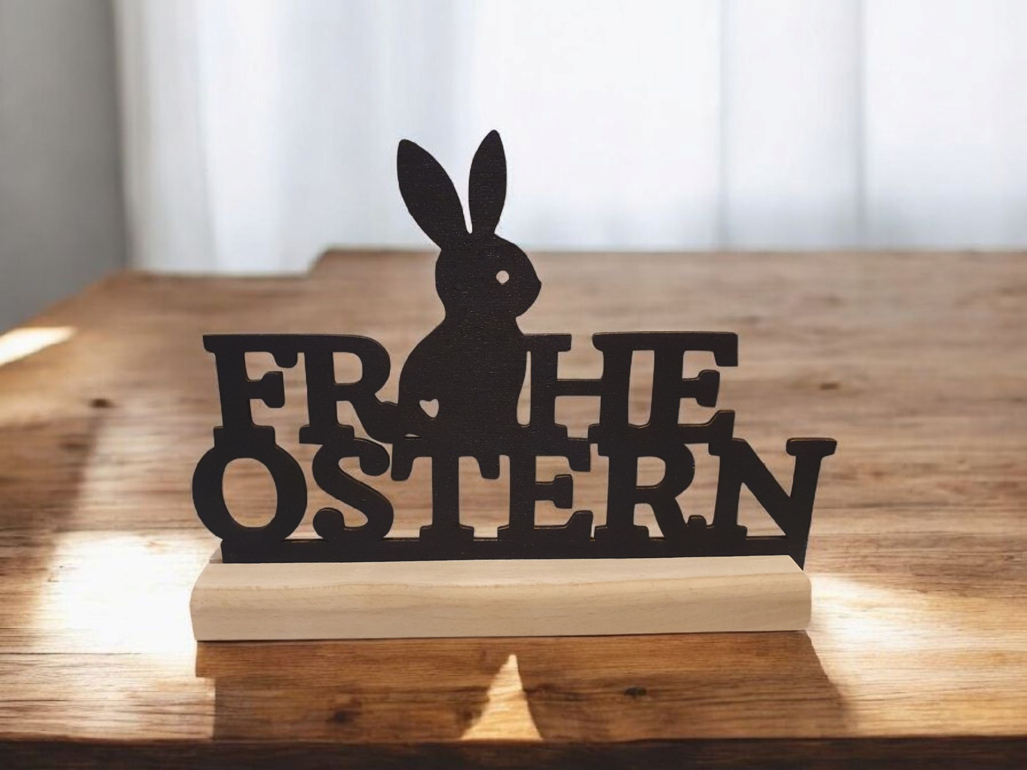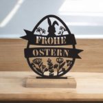 • Aufsteller schwarz mit Halter Froher Ostern und Zwerg mit Schubkarre groß = 12,50€