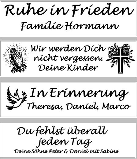 Individueller Text und Motive möglich. Gerne schicke ich ihnen ein Design zu.