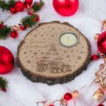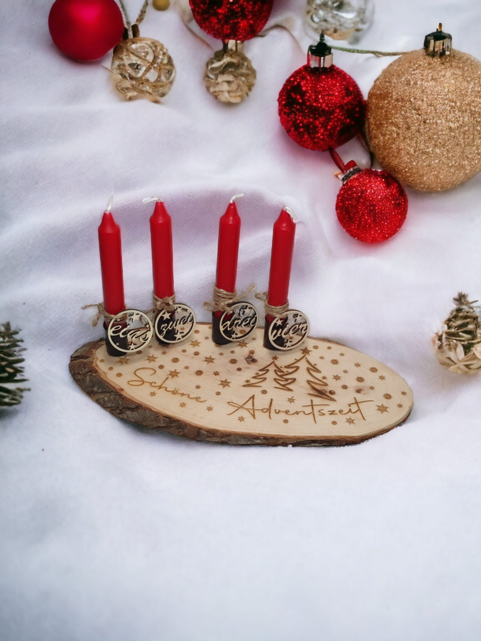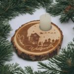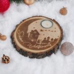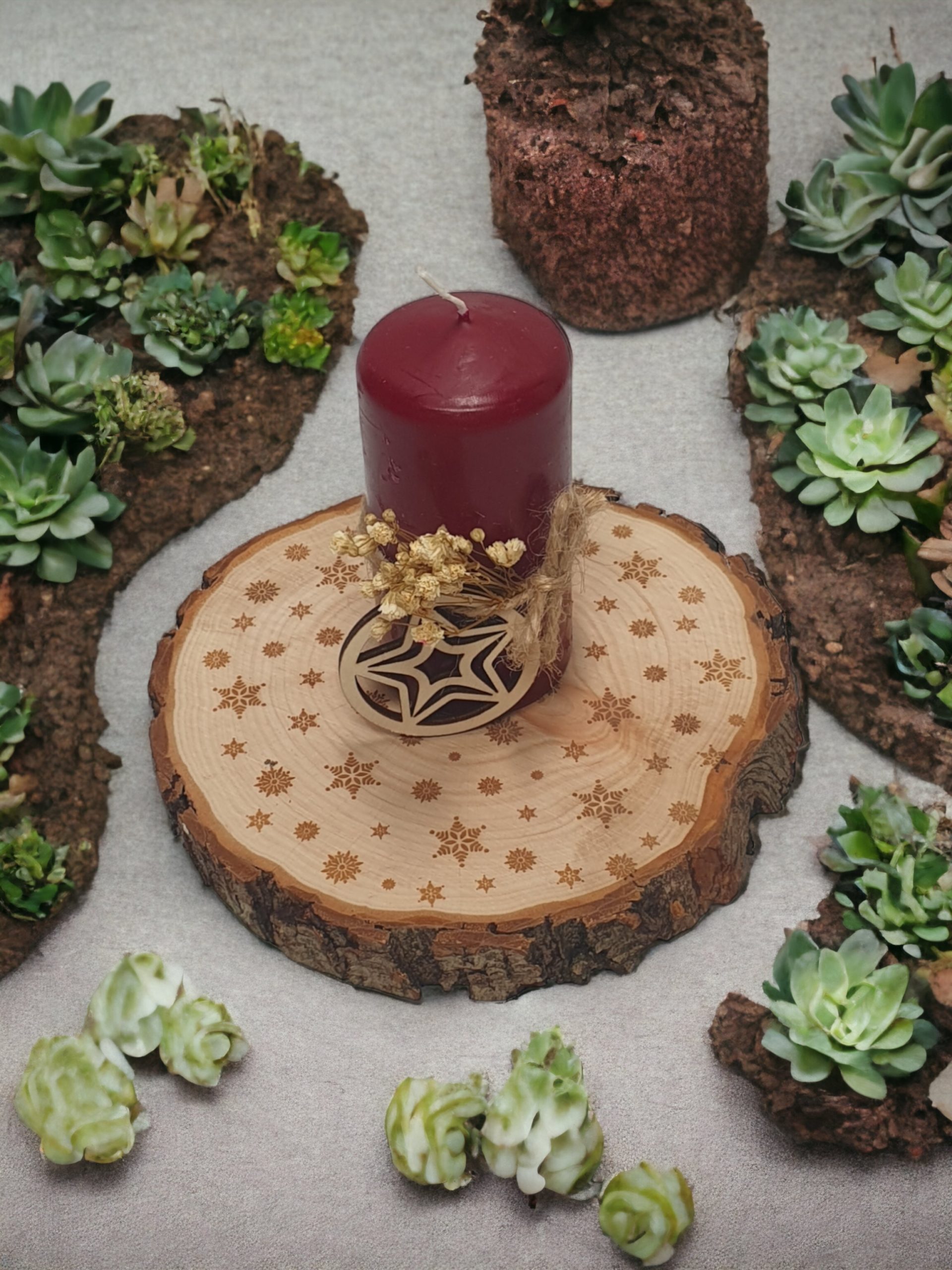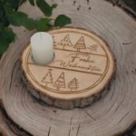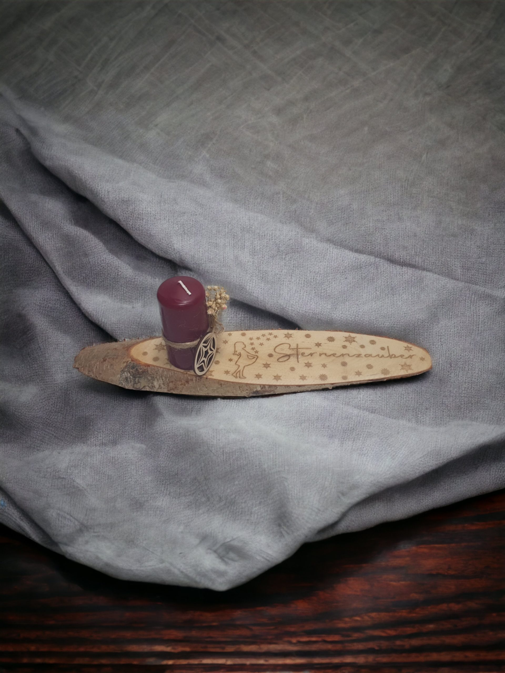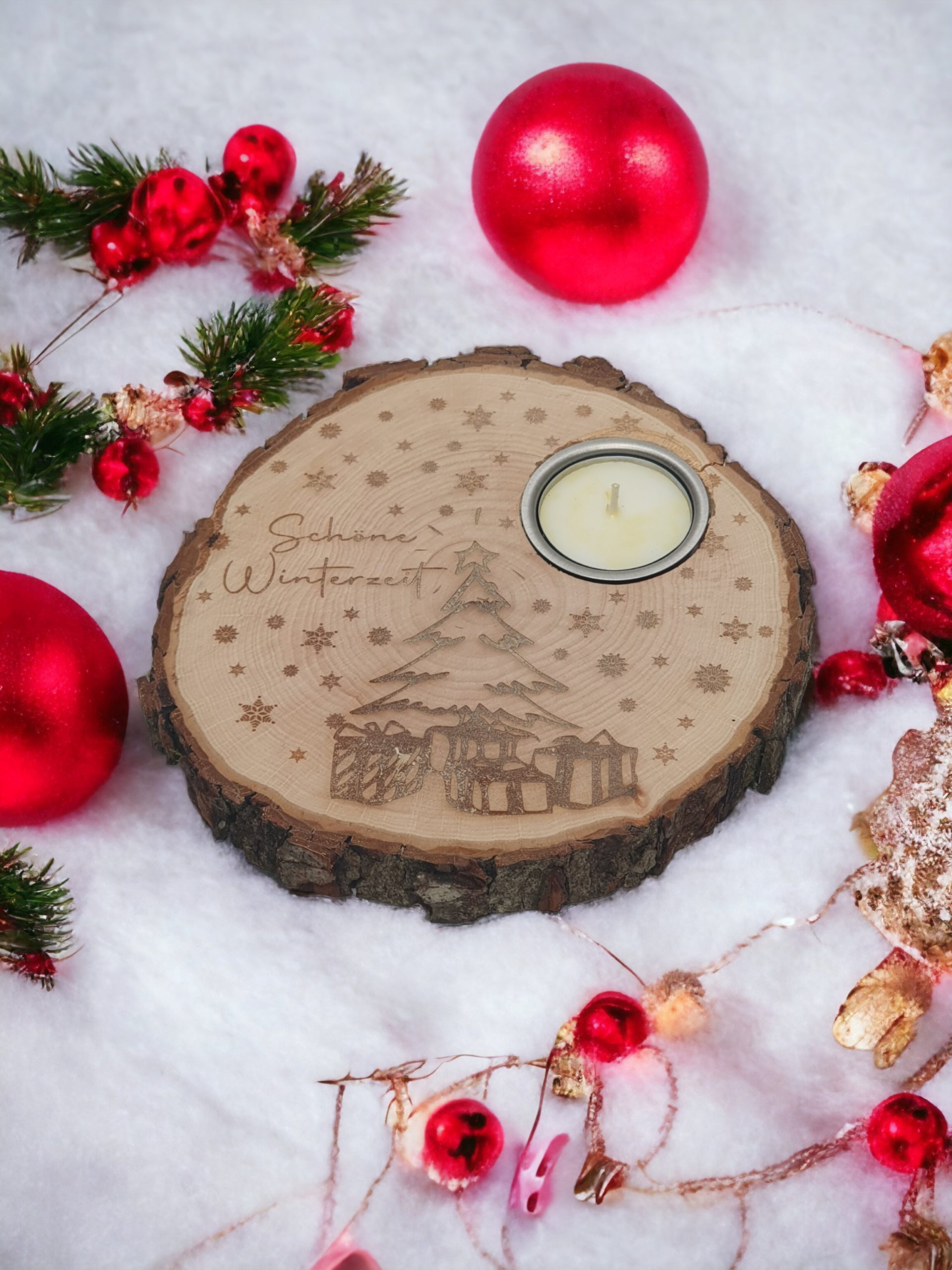 - Kerzenhalter Holzschiebe graviert Scheibe mit Rinde = 8,50€
